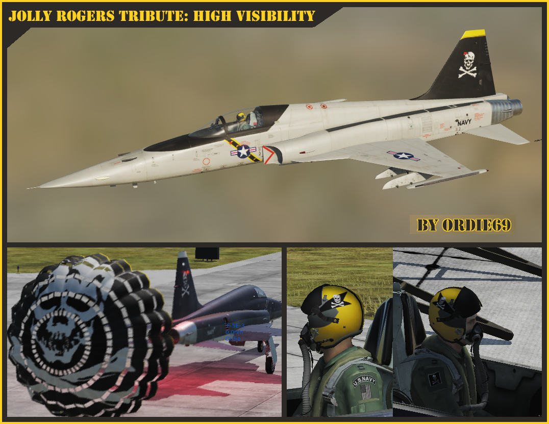 This livery is in tribute to the men and women of the "Jolly Rogers", past and present. From one "Jolly Roger (86-90)" to the rest, "Fear the Bones!" To the family of Ensign Jack Ernie, you have my sympathy for your loss and gratitude for your donation to the squadron. Jack is in good hands. For everyone else, please enjoy the skin without restriction.  <br /><br /><br />