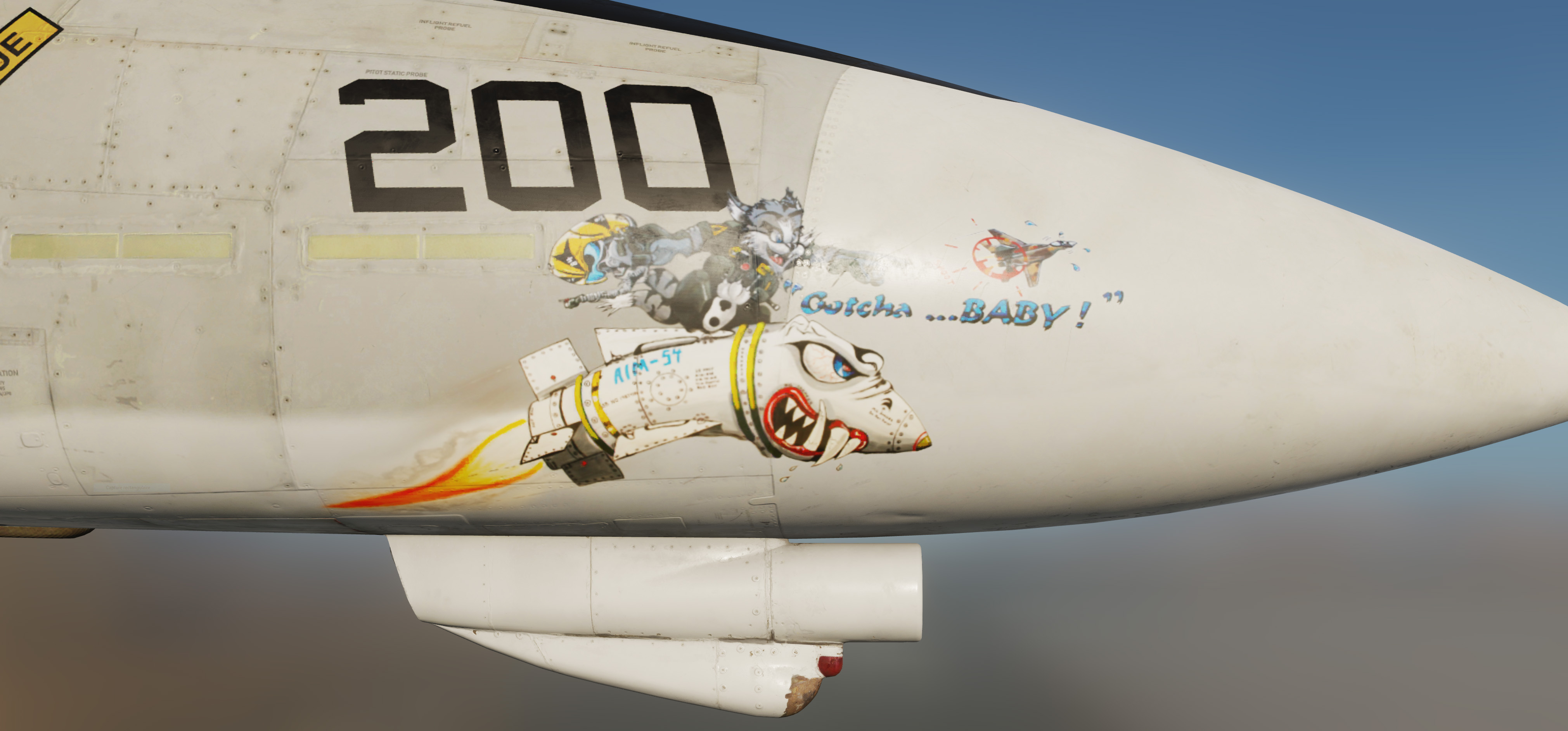 Livery of the VF-84 F-14A with the noseart "Gotcha... Baby!"