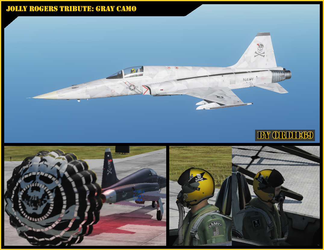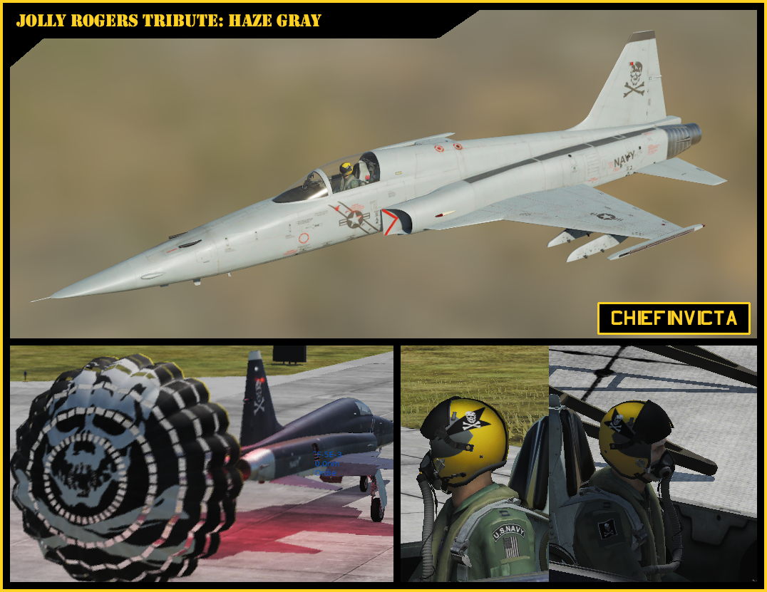 This livery is in tribute to the men and women of the "Jolly Rogers", past and present. From one "Jolly Roger (86-90)" to the rest, "Fear the Bones!" To the family of Ensign Jack Ernie, you have my sympathy for your loss and gratitude for your donation to the squadron. Jack is in good hands. For everyone else, please enjoy the skin without restriction.