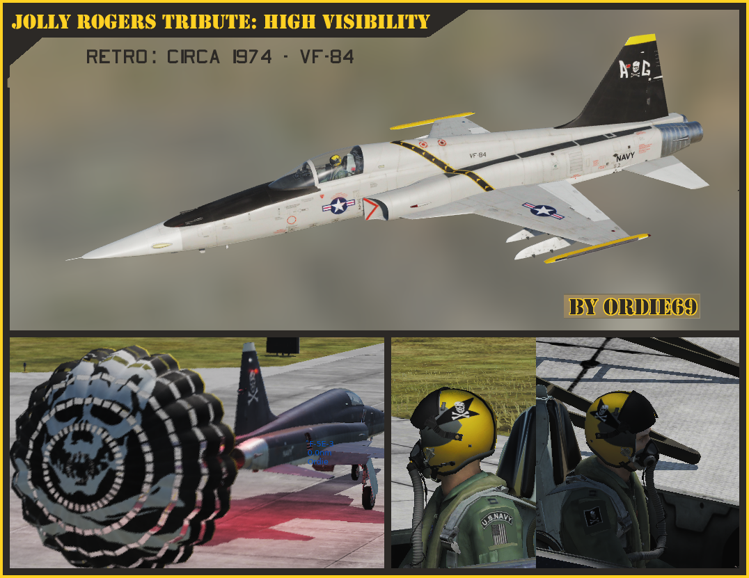 This livery is in tribute to the men and women of the "Jolly Rogers", past and present. From one "Jolly Roger (86-90)" to the rest, "Fear the Bones!" To the family of Ensign Jack Ernie, you have my sympathy for your loss and gratitude for your donation to the squadron. Jack is in good hands. For everyone else, please enjoy the skin without restriction.  <br /><br /><br />