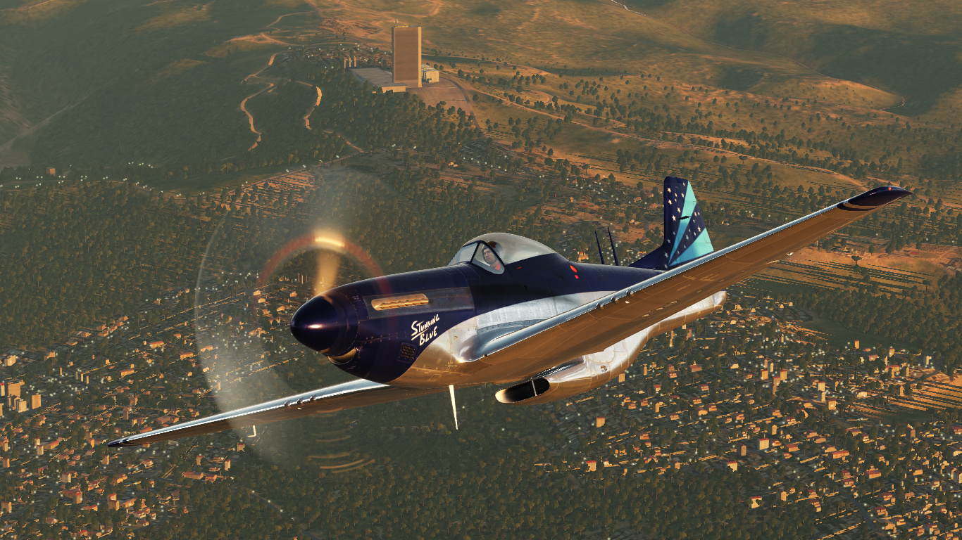 A fictional, civilian airshow/racing livery for the TF-51D. Includes custom helmet, patches, cockpit photo and orange flight suit. External model textures (the aircraft livery itself) are compatible with the P-51D Mustang.
