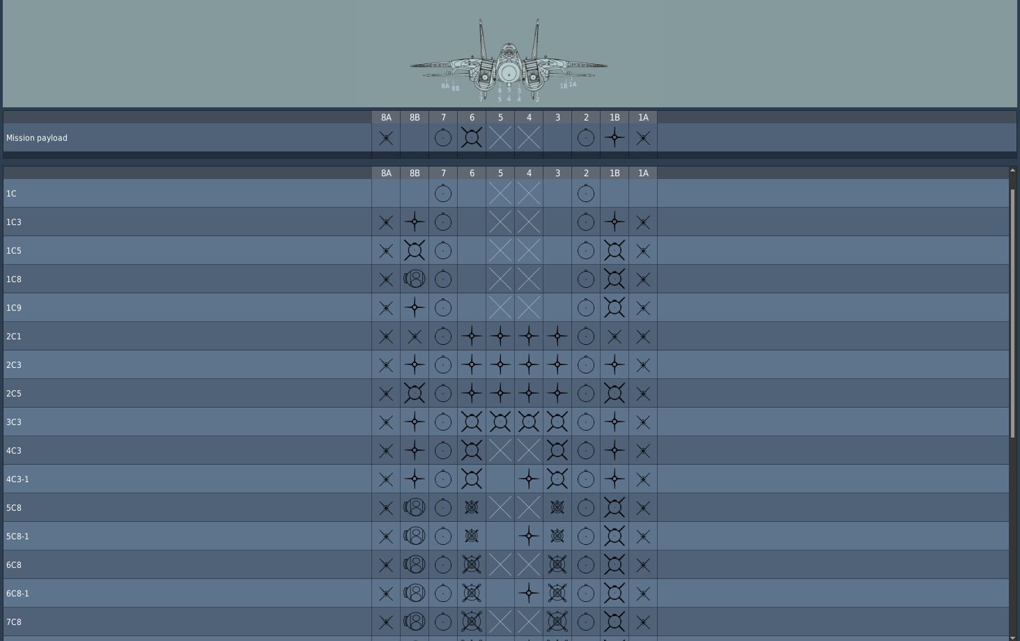 Samples of Realistic and "According to the Manual" loadout configurations used by the US Navy in the F-14's service life, for easier and faster rearming for all!
