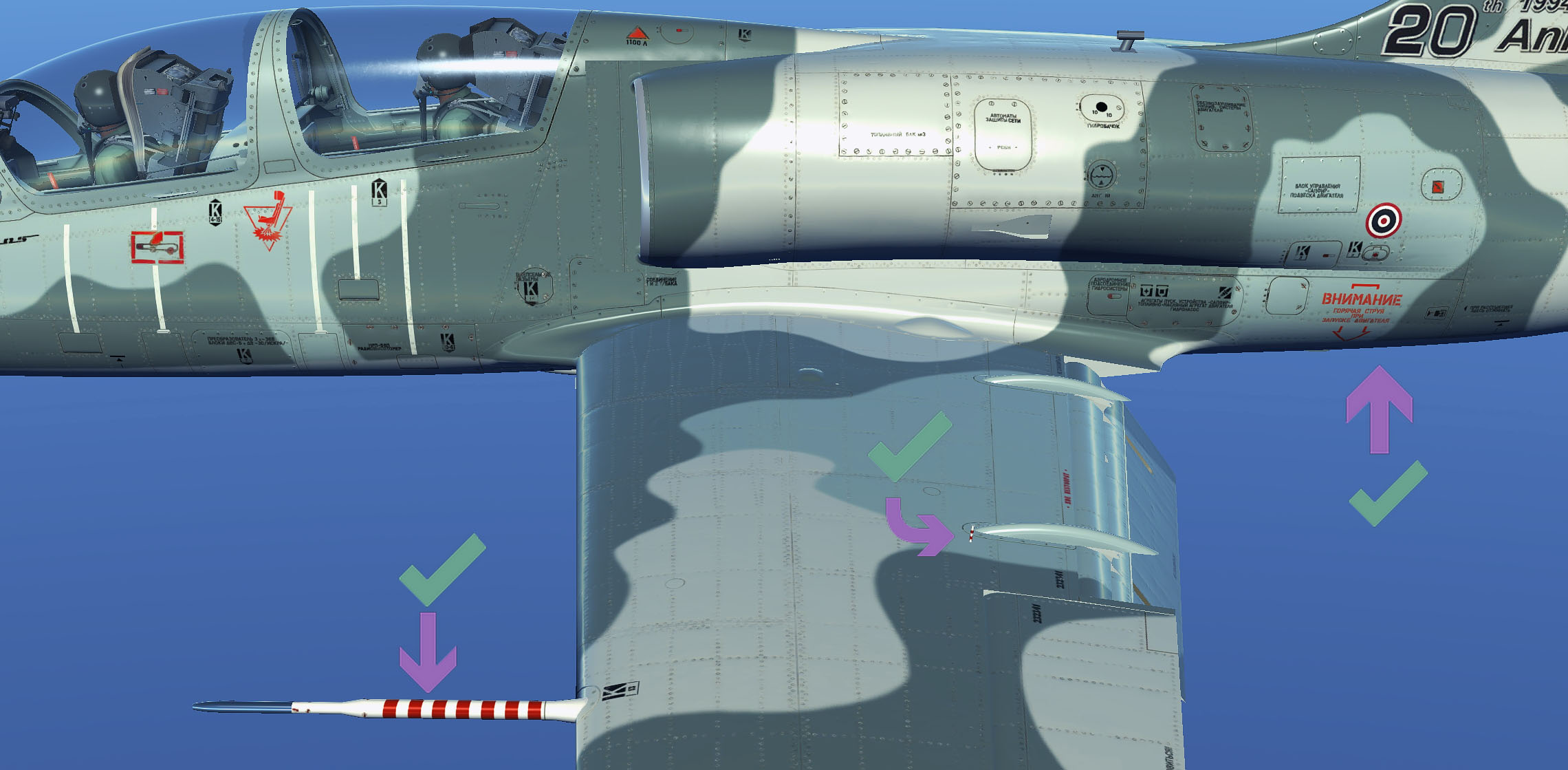 Red white striped pitot pipes on wings