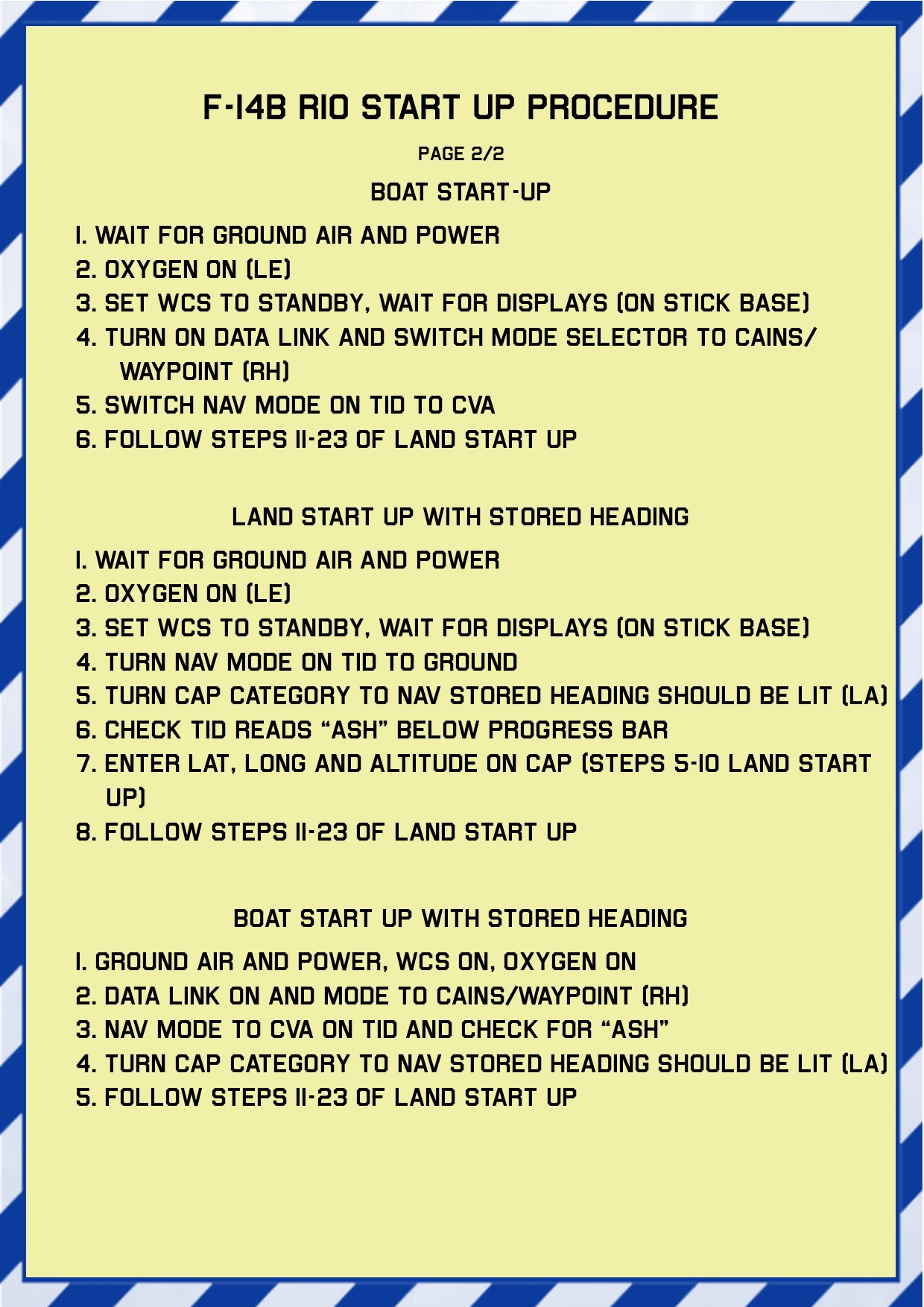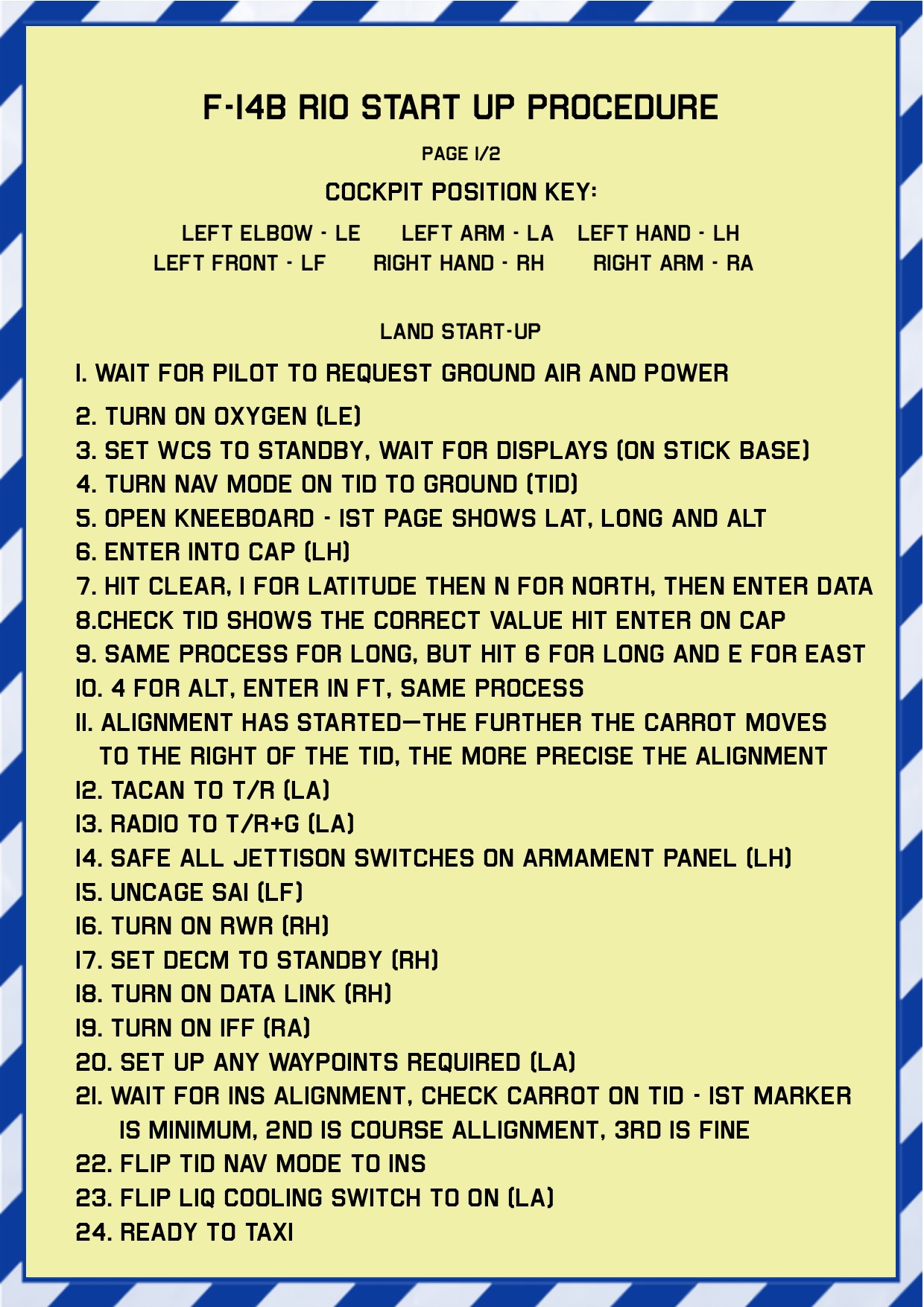 RIO start-up checklists for the F-14B in my usual format (which works well in VR). <br /><br />