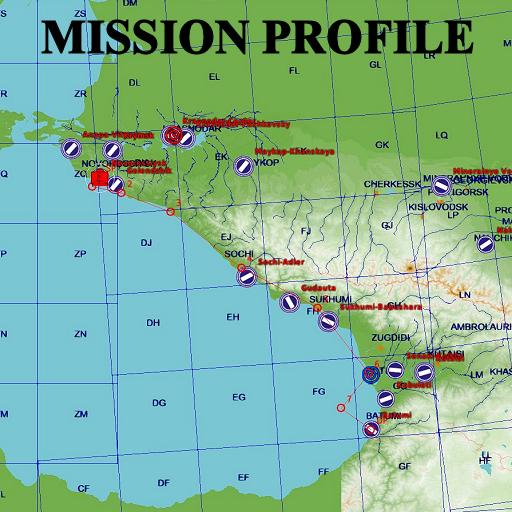 Fly along the Russian and Georgian coast from Novorossiysk to Batumi to familiarise yourself with the coastal area and the various airfields along the route.