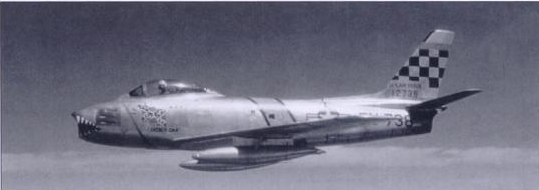 The fighter was christened "FATHER DAN" by its pilot in honour of the 51st FW Chaplain, Jesuit priest Dan Campbell. Salze was an exceptional pilot who had claimed two Me 262 kills in WW2 flying P-51Ds. He had destroyed two MiG-15s in "FATHER DAN" by early June 1953. Looking for his fifth kill during a mission over 'MiG Alley' on 11 June, his luck ran out when his jet (F-86F-5 51-2938) suffered an engine failure and Salze was forced to eject over the Yellow Sea. Although a rescue helicopter was soon on the scene, the Sabre pilot drowned before he could be winched to safety. "FATHER DAN" survived the war and was eventually transferred to the 35th FW.