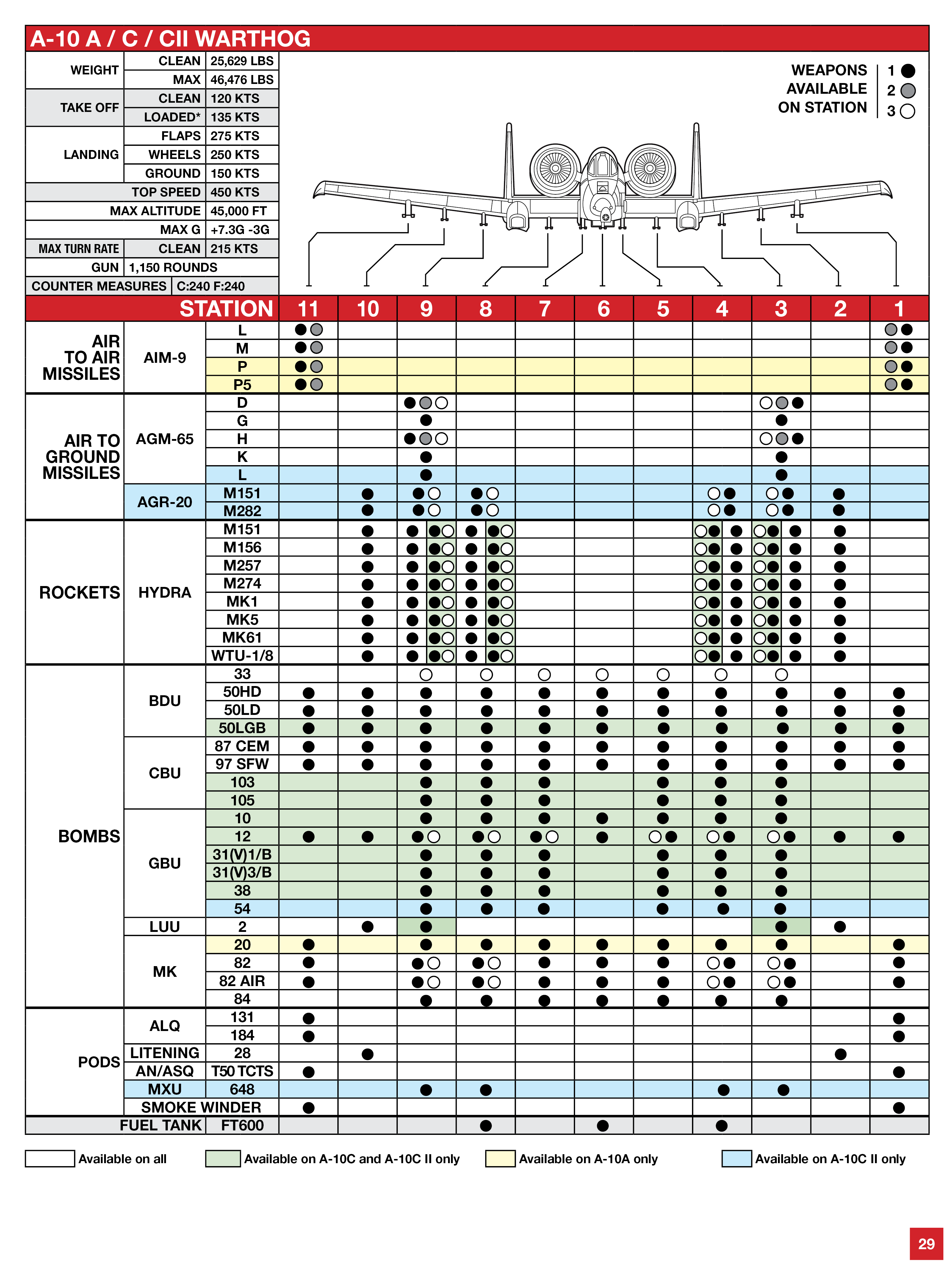 A complete dossier of all the weapons, pods, launchers and stuff that can carry and A-10 II, with detailed information about weights, delivery mode and relevant informacion about each one.