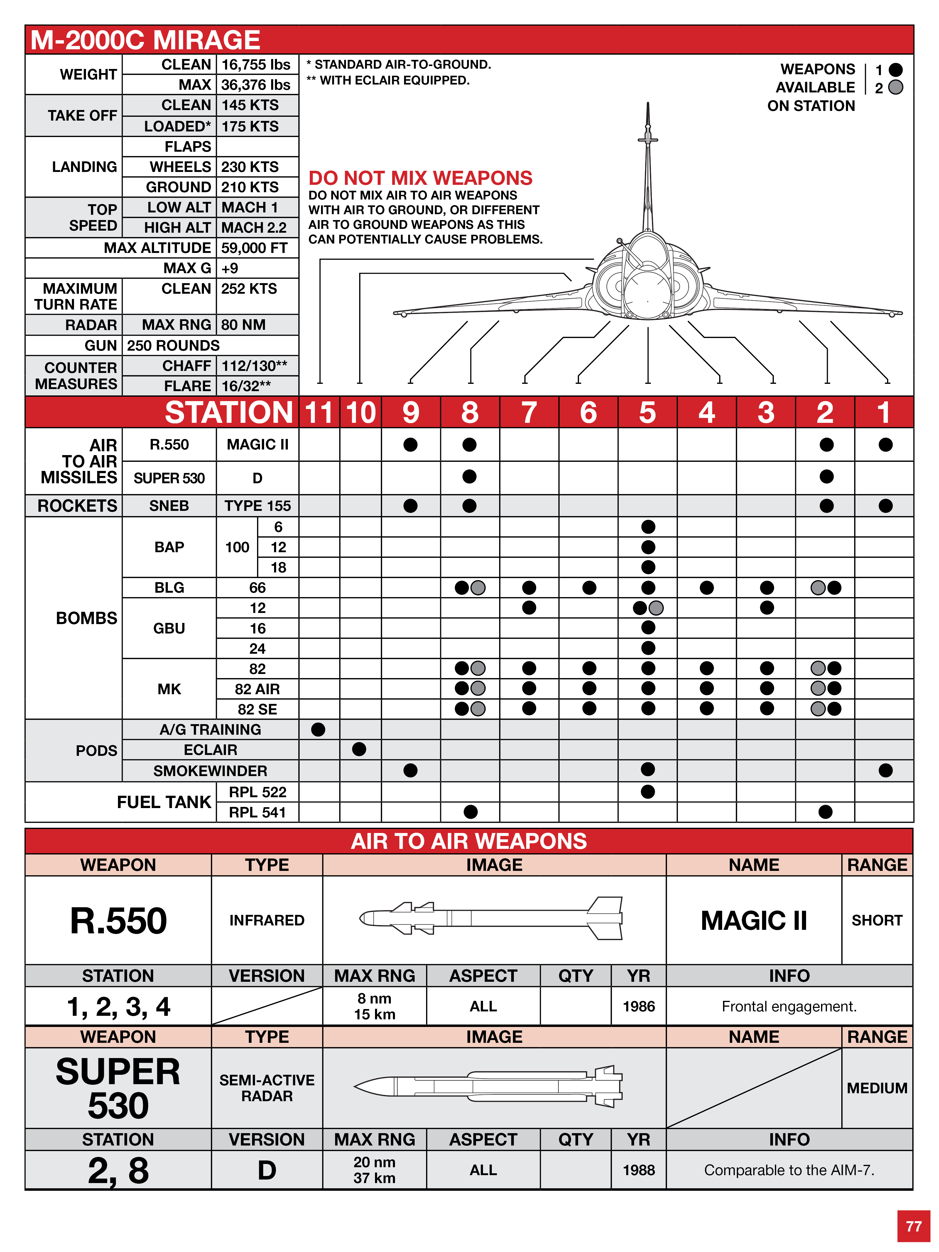 DCS Reference Guide. Version 33 release. Currently includes Air to Air weapons, all Air to ground weapons and RWR symbology. Data information will be updated as needed.  I have also included the kneeboards for each aircraft, weapons type, helicopter and RWR.