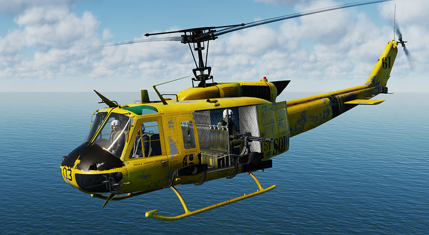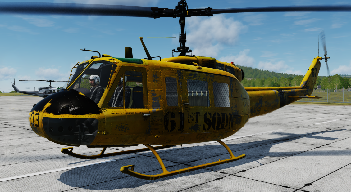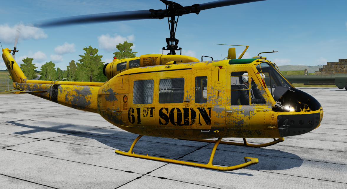 61st Sqd worn yellow Huey pulled out of the skip