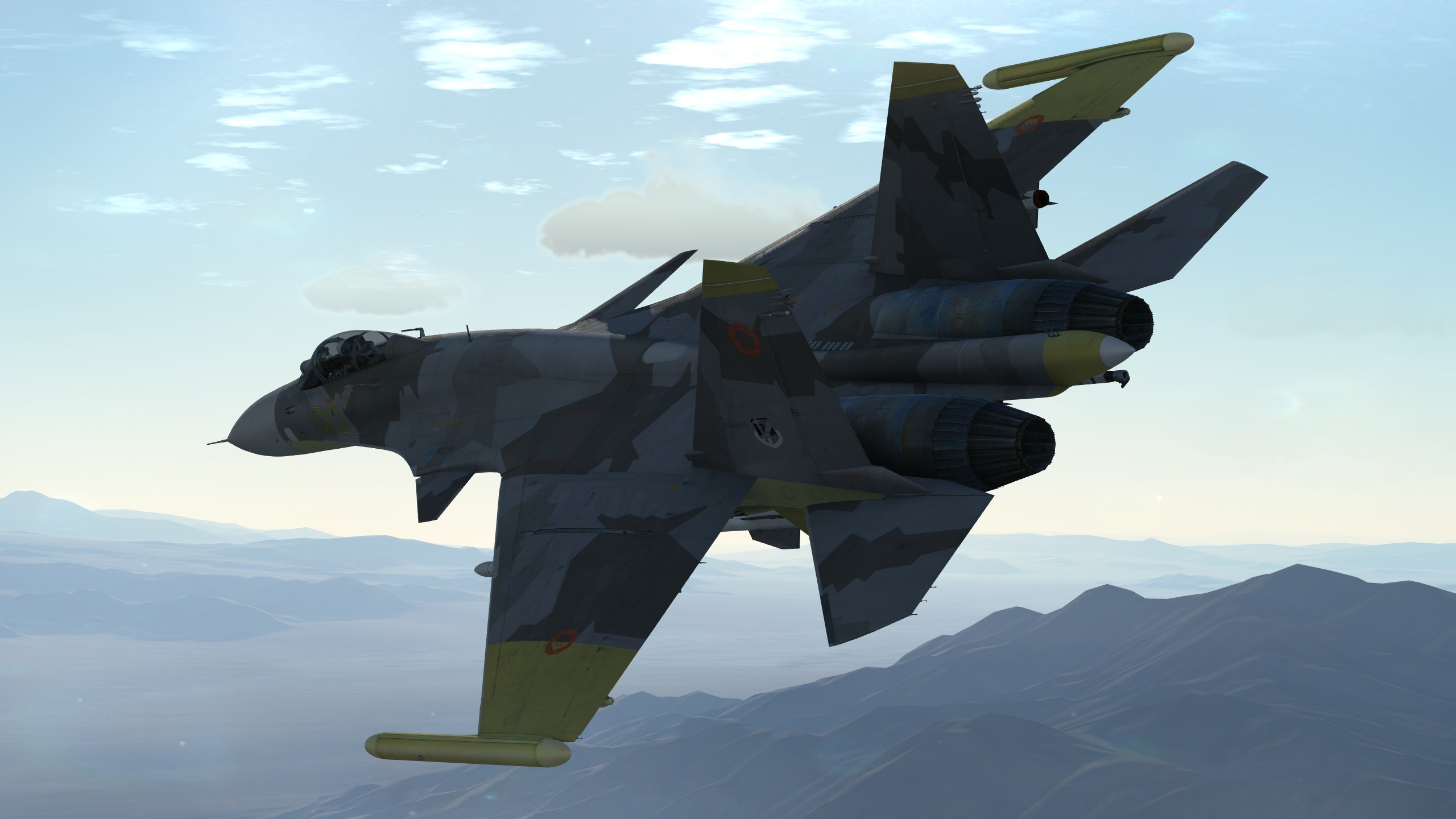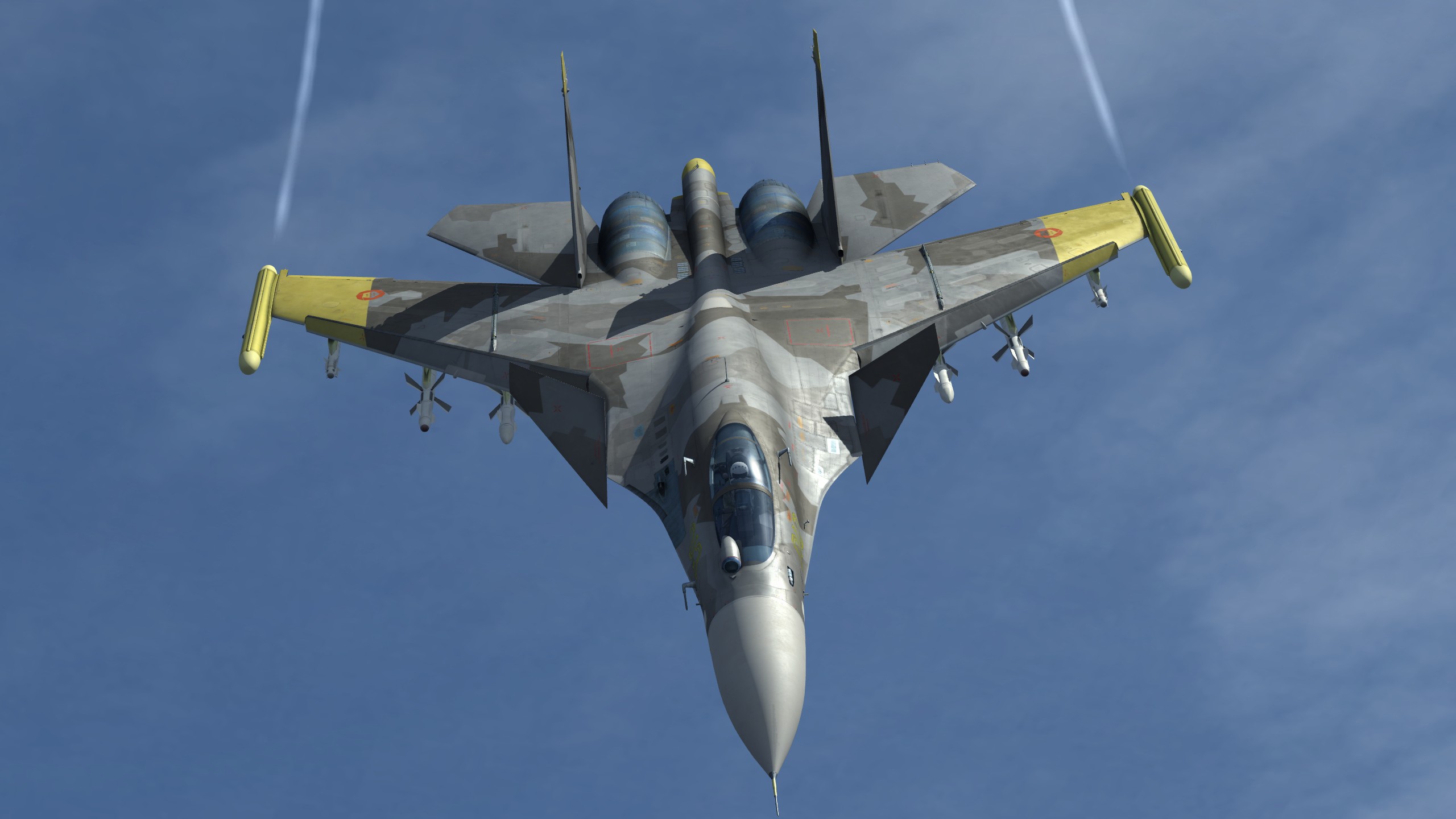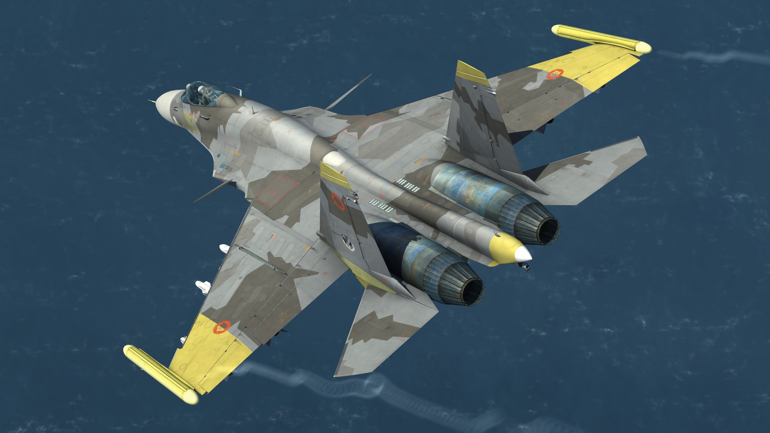 A recreation of Yellow 13's livery from the game Ace Combat 04: Shattered Skies. While Yellow 13 flew a Su-37, the Su-33 is used in place.