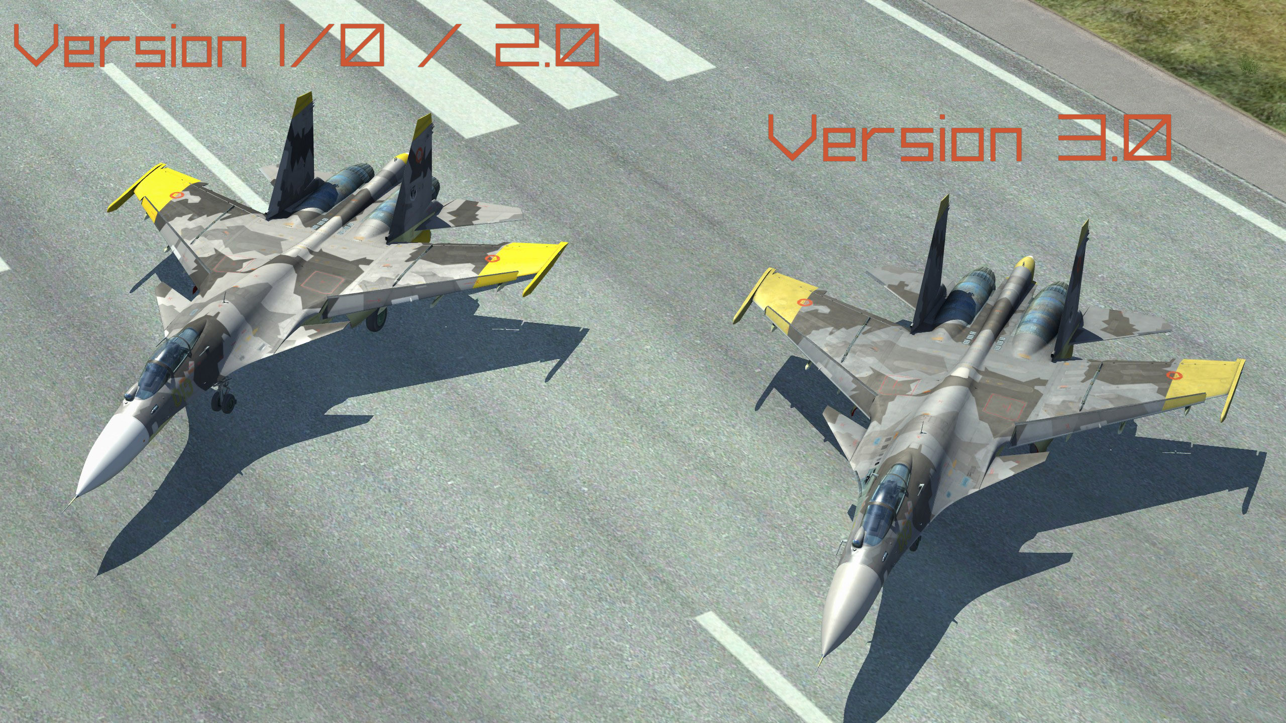 - Changes to the camo geometry were made to bring the skin closer to the original Ace Combat 04 scheme rather than the AC5/Z or AC6/AH versions with the exception of the front nose (retains AC6 style).